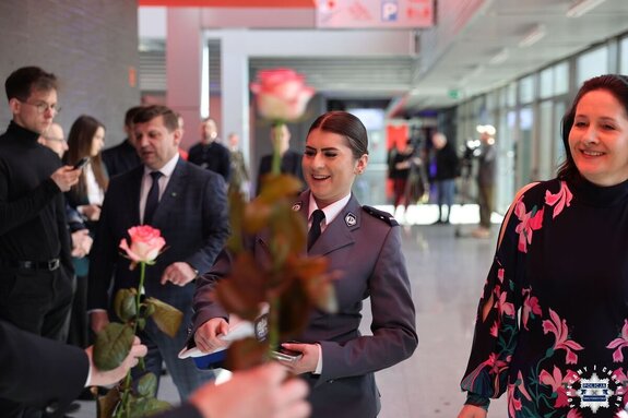 Dziś wiele przedstawicielek służb mundurowych, w tym policjantek oraz pracowników cywilnych świętokrzyskiej Policji, uczestniczyło w uroczystym spotkaniu z okazji Dnia Kobiet, które odbyło się w Centrum Kongresowym Targi Kielce. Uroczystość rozpoczęło powitanie wszystkich Pań, które zostały także obdarowane kwiatami.