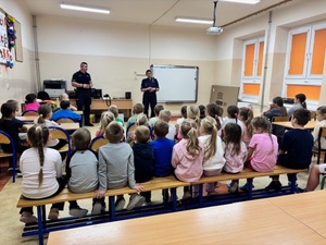 - BĄDŹ WIDOCZNY - NOŚ ODBLASKI W minionym tygodniu w ramach działań profilaktycznych, kazimierscy policjanci spotkali się z dziećmi ze Szkoły Podstawowej w Bejscach. Podczas pogadanki profilaktycznej policjanci omówili tematy związane z bezpieczeństwem w ruchu drogowym. Przypomnieli podstawowe zasady bezpiecznego poruszania się po drogach oraz jak ważne jest używanie elementów odblaskowych.