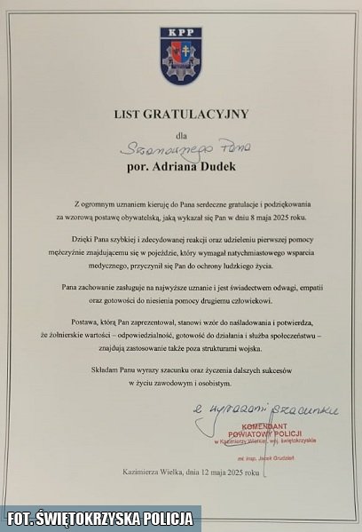 To wydarzenie pokazuje, że nawet poza służbą mundurowi pozostają gotowi do działania – a jedno spojrzenie i decyzja, by się zatrzymać, mogą mieć kluczowe znaczenie dla czyjegoś życia.