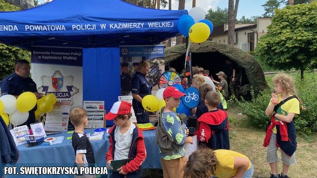 Po zakończeniu oficjalnego apelu główną atrakcją dnia stał się niezwykle barwny festyn rodzinny w Sielpi Wielkiej, który przyciągnął licznych mieszkańców regionu, rodziny funkcjonariuszy oraz gości spoza Końskich. Podczas Wojewódzkich Obchodów Święta Policji nie zabrakło przedstawicieli jednostek z garnizonu świętokrzyskiego. Policjanci z Komendy Powiatowej Policji w Kazimierzy Wielkiej wraz ze Związkiem Strzeleckim „Niepodległość” na czele w komendantem Związku Strzeleckiego Sylwestrem Szmitem, reprezentowali region kazimierski. Kazimierscy policjanci zachęcali do udziału w konkursach dotyczących bezpieczeństwa, a stoisko cieszyło się bardzo dużym zainteresowaniem. Zorganizowane konkursy dla dzieci, dorosłych i seniorów sprawiły, że każdy znalazł coś dla siebie. Swoją obecnością stoisko zaszczycił Zastępca Komendanta Głównego Policji nadinsp. Dr Tomasz Michułka wraz z Komendantem Wojewódzkim Policji w Kielcach insp. Zbigniewem Nowakiem.