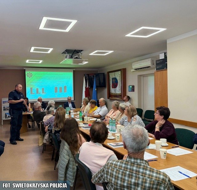 W minionym tygodniu w ramach tej inicjatywy w Starostwie Powiatowym w Kazimierzy Wielkiej odbyło się spotkanie edukacyjne dla seniorów. Wśród prelegentów znaleźli się między innymi: zastępca Dyrektora w Departamencie Funduszy i Nieodpłatnej Pomocy Prawnej, specjalista ds. programów edukacyjno–informacyjnych, Prezes Sądu Rejonowego w Busku – Zdroju, oraz Kierownik Rewiru Dzielnicowych kazimierskiej komendy. asp. szt. Sławomir Fudala. Policjant szczegółowo omówił najpopularniejsze metody oszustw takie jak „na wnuczka”, „na policjanta” czy „wypadek”. W swoim wystąpieniu tłumaczył, jak te schematy ewoluują i stają się coraz bardziej wyrafinowane. Podkreślał, że prawdziwi policjanci nigdy nie proszą o pieniądze ani o ich przekazywanie, a banki i urzędy nie załatwiają spraw finansowych przez telefon w sposób wymagający natychmiastowych działań.